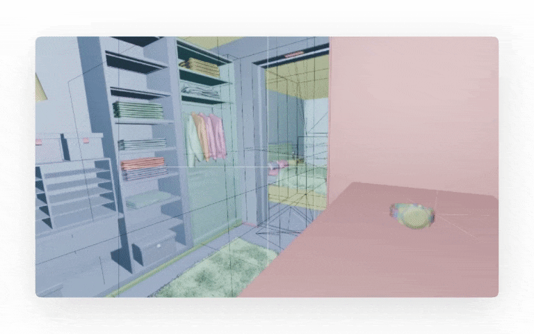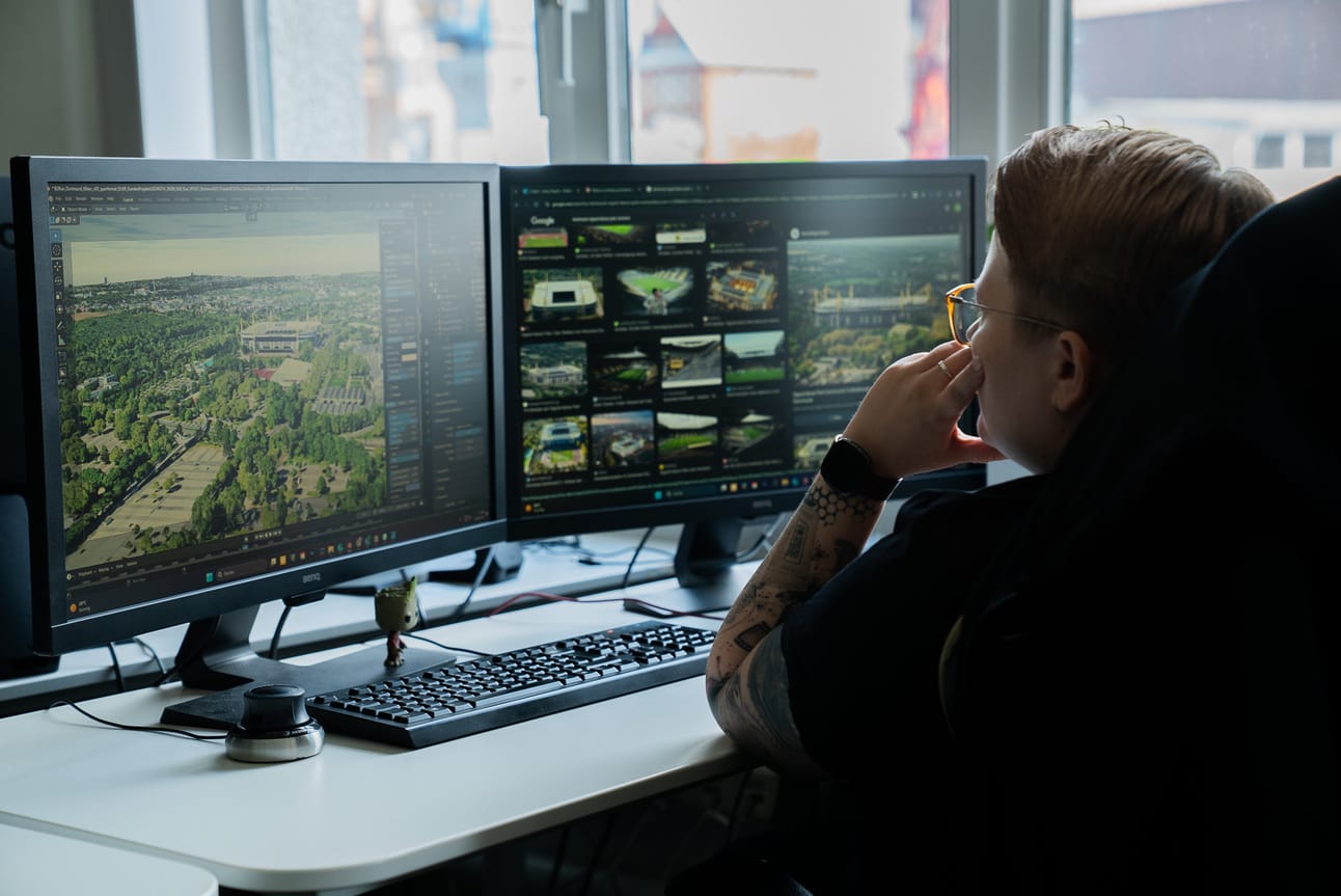 Anders als bei gefilmten Videos wird die 3D-Welt häufig komplett konstruiert. Auch Kamerabewegungen, Länge der Sequenzen und fokussierte Objekte werden von unseren Designer:innen festgelegt. Wir setzen die 3D-Modelle in die vorgesehenen Szenen ein und erstellen eine Vorvisualisierung, um das Gesamtbild zu testen. Dies ist ein entscheidender Moment, um die Struktur des Films festzulegen.